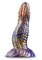 - Swirling metallic colors: This amazingly colored and artfully shaped piece is truly a wonder to see. Like a "spin-painting" in silicone, you can’t quite tell where it’s endless range of colors begins and ends! And adding to its color-burst is a wild range of textures ranging from “dragon scales,” to horizontal pleasure ridges, to long, vertical valleys. All with a sensuous tapered tip for ease of insertion, widening to a comfortable but fulfilling body.